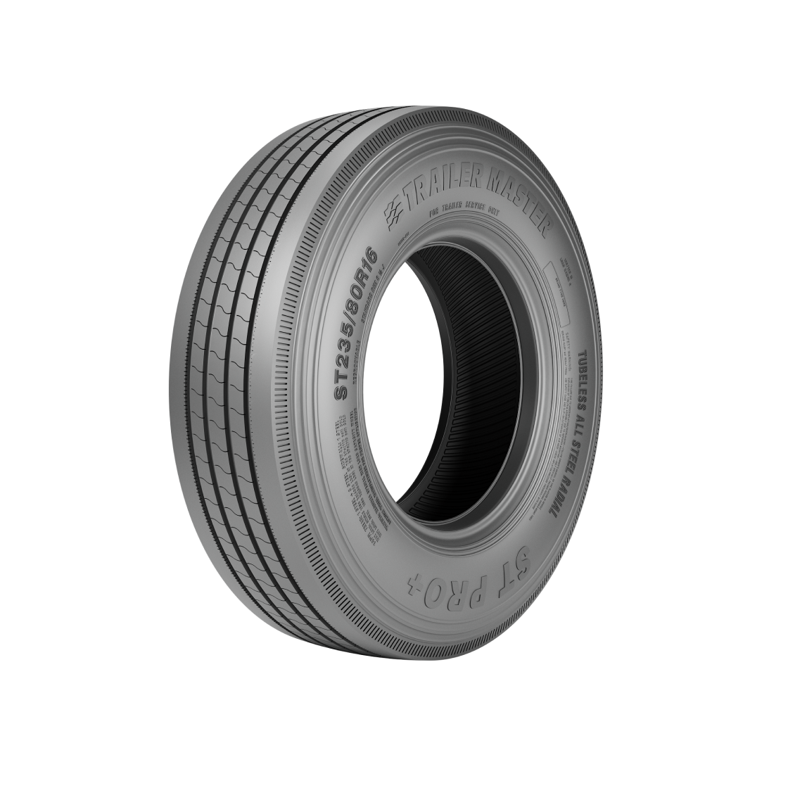 The ST Pro+ features an all-steel construction in both the sidewall and tread that provides durability under heavy loads. The multi-sipe tread design further improves traction in wet conditions and dissipates heat for extended tread life. In addition, wide grooves reduce hydroplaning, and an innovative tread compound decreases rolling resistance.